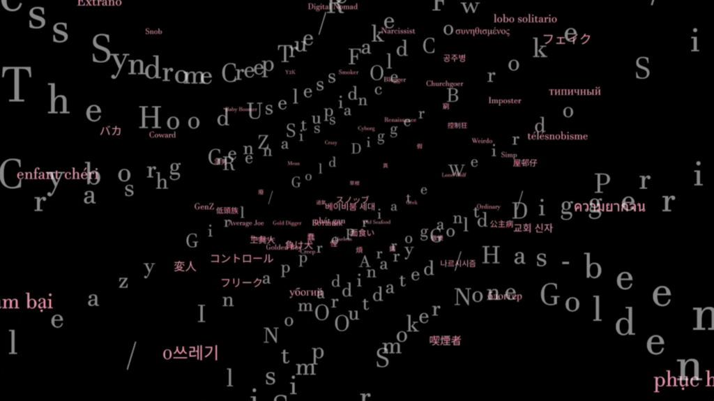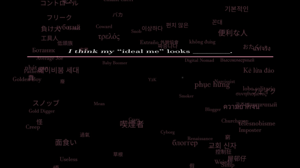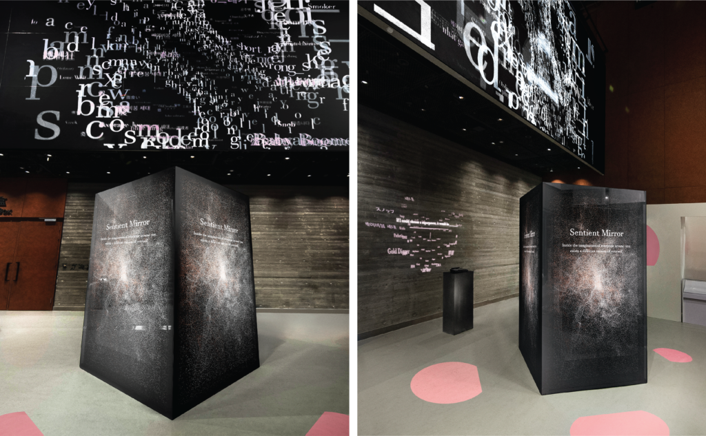 The experience takes audiences on a voyage of self-discovery, a journey that brings together the hashtags generated by the collective and offers a glimpse into an “AI-generated self” with labels in the mirror.