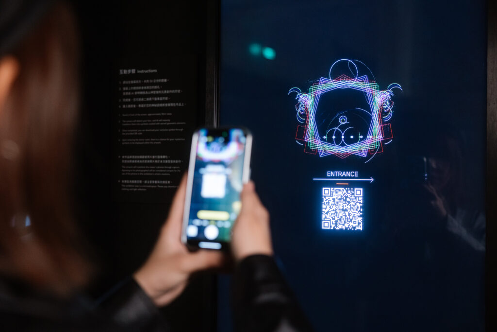 Through the collective information of the viewers within the space, coupled with real-time learning by artificial intelligence (AI), the artwork responds to environmental stimuli and perceives viewers’ physical characteristics and emotions. AI then randomly extracts and analyzes the data, allowing viewer participation to not only alter the visual composition of the artwork, such as colors, forms, movement speed, and angles but also enabling interactive engagement within the space. This interactive process transforms the participation of individuals into symbols created with sacred geometric elements, displayed within the artwork. Different perspectives from various angles allow viewers to personally experience and interpret its meaning.